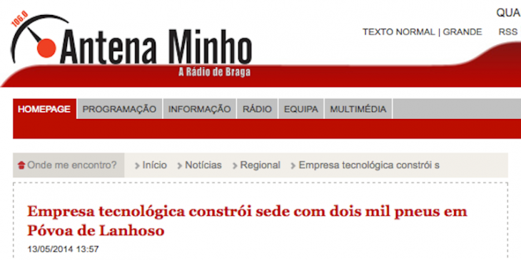 News published on the Antena Minho website about the construction of the Utopia Building, on May 13, 2014.