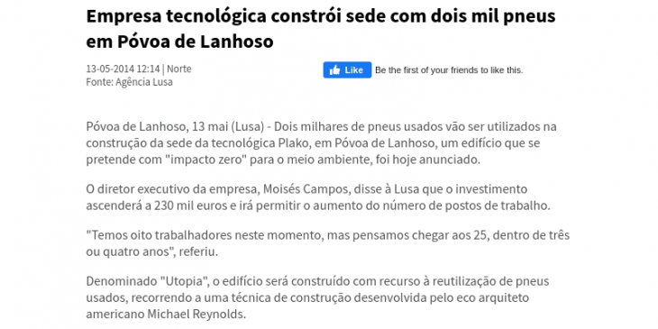 Article published on the Porto Canal website about the construction of the Utopia Building, on May 13, 2014.